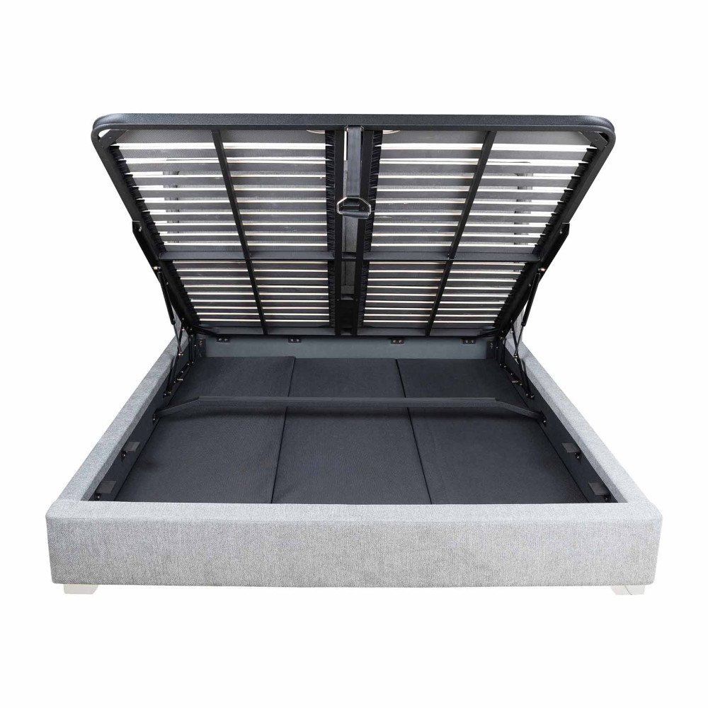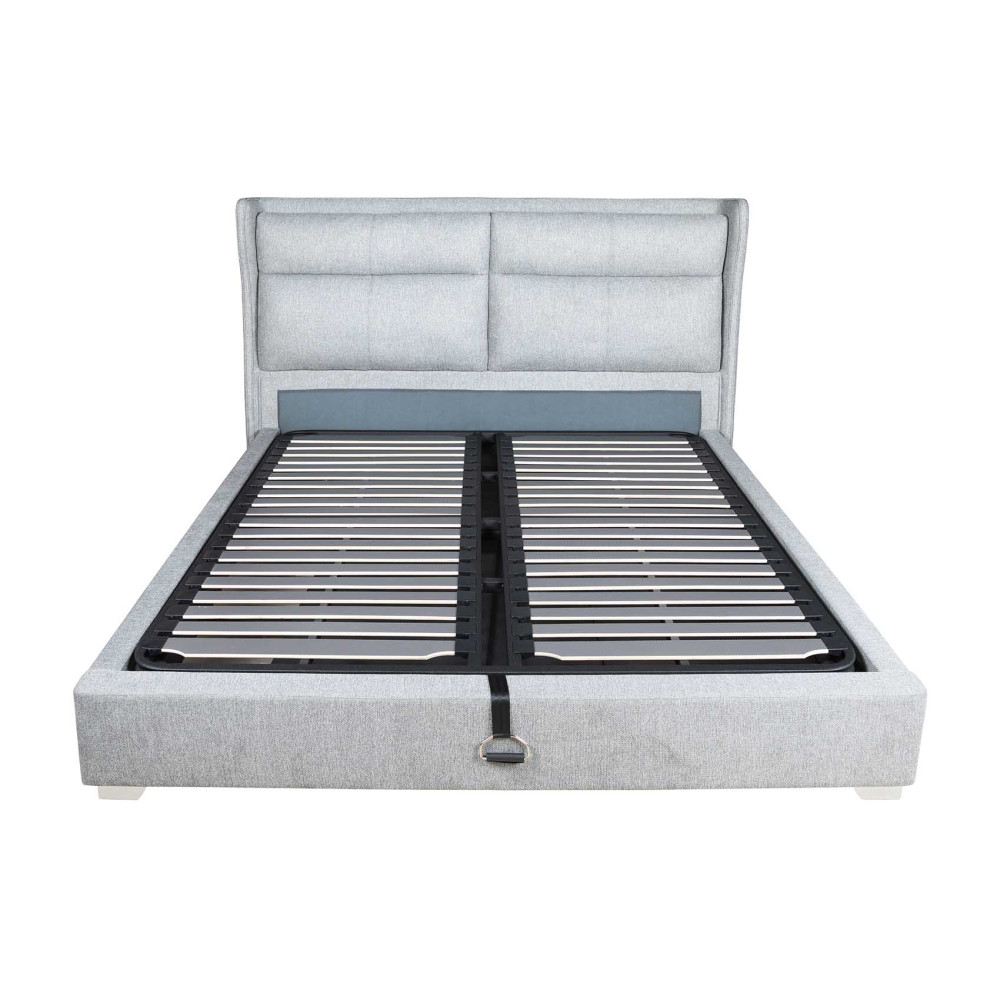Це ліжко виконане з тканини сірого кольору, що створить теплу та привітну атмосферу у вашій спальні М'яка тканинна оббивка комфортна на дотик та стійка до зношування.