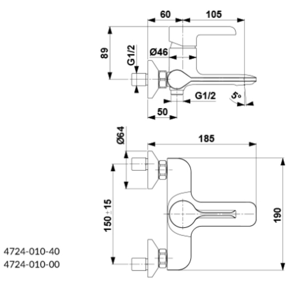 ANGELIT Змішувач для ванни без душового комплекту білий Технопласт