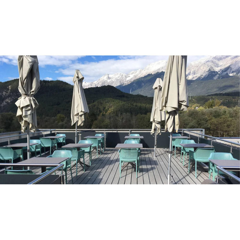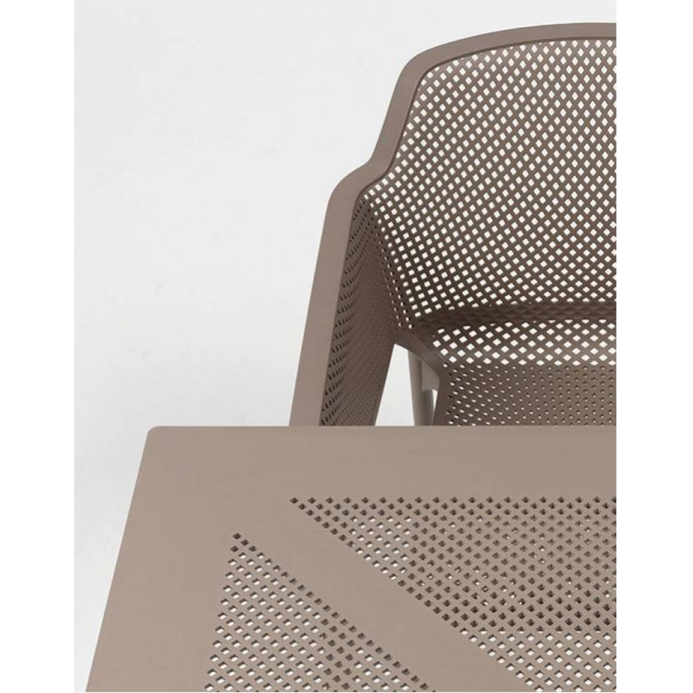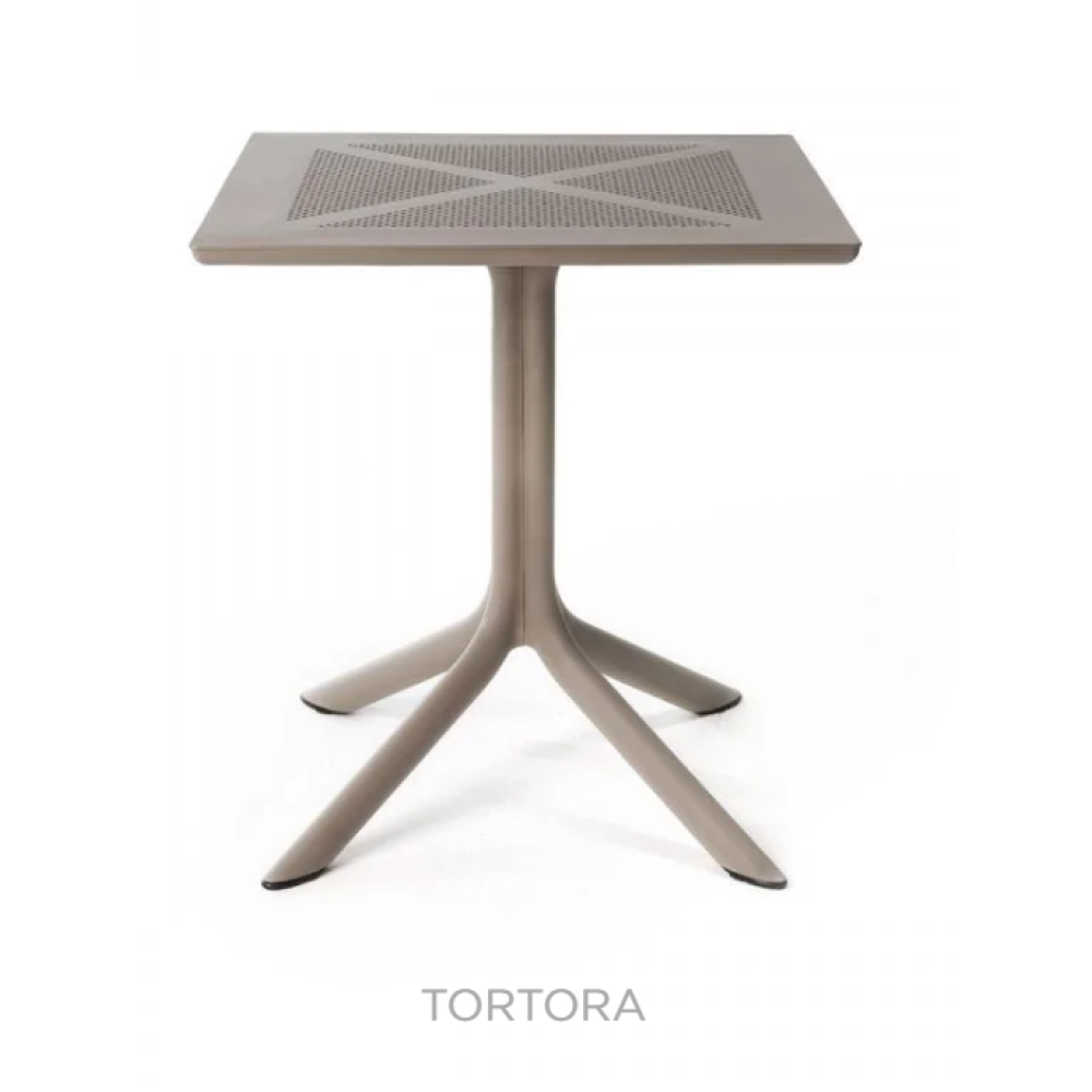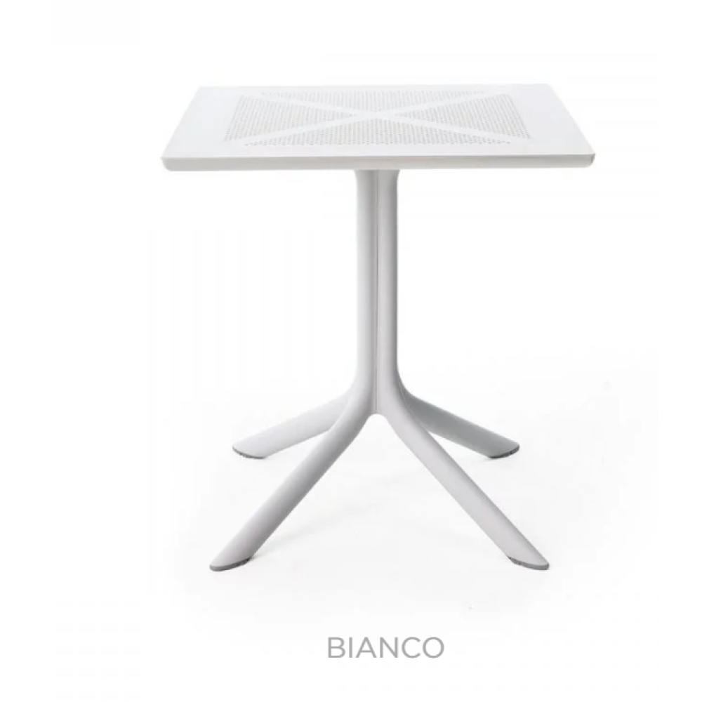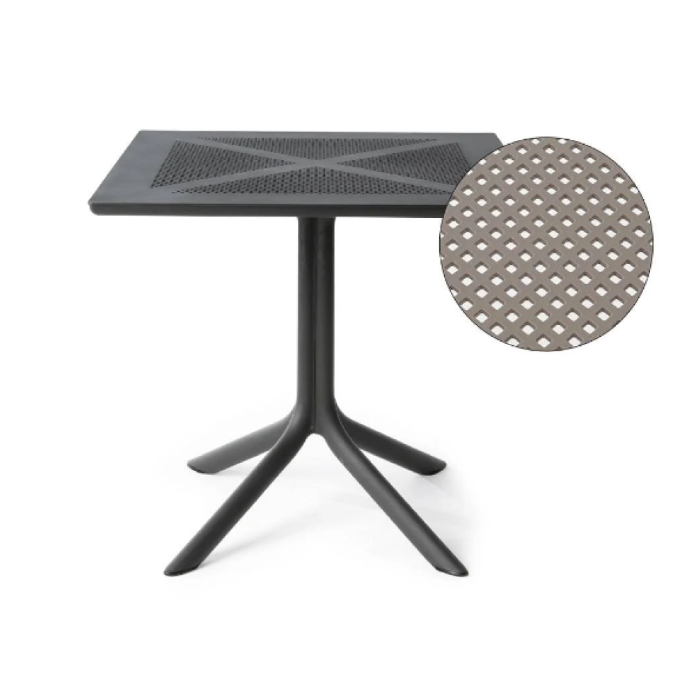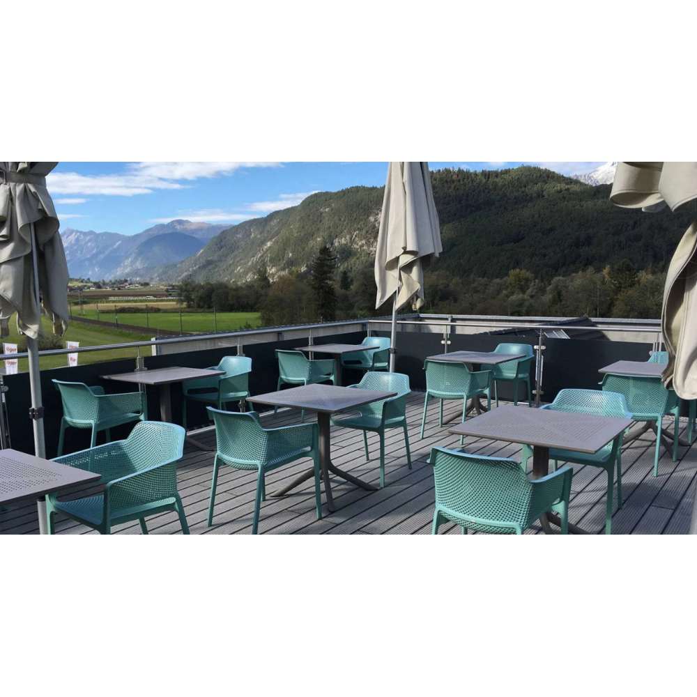 Стіл з 4-х зіркового центральною ніжкою. Поверхня Durel Top зі скловолокна і поліпропілену, оброблена анти-УФ, однорідного кольору. Матова обробка. Обладнаний регульованими ніжками.
