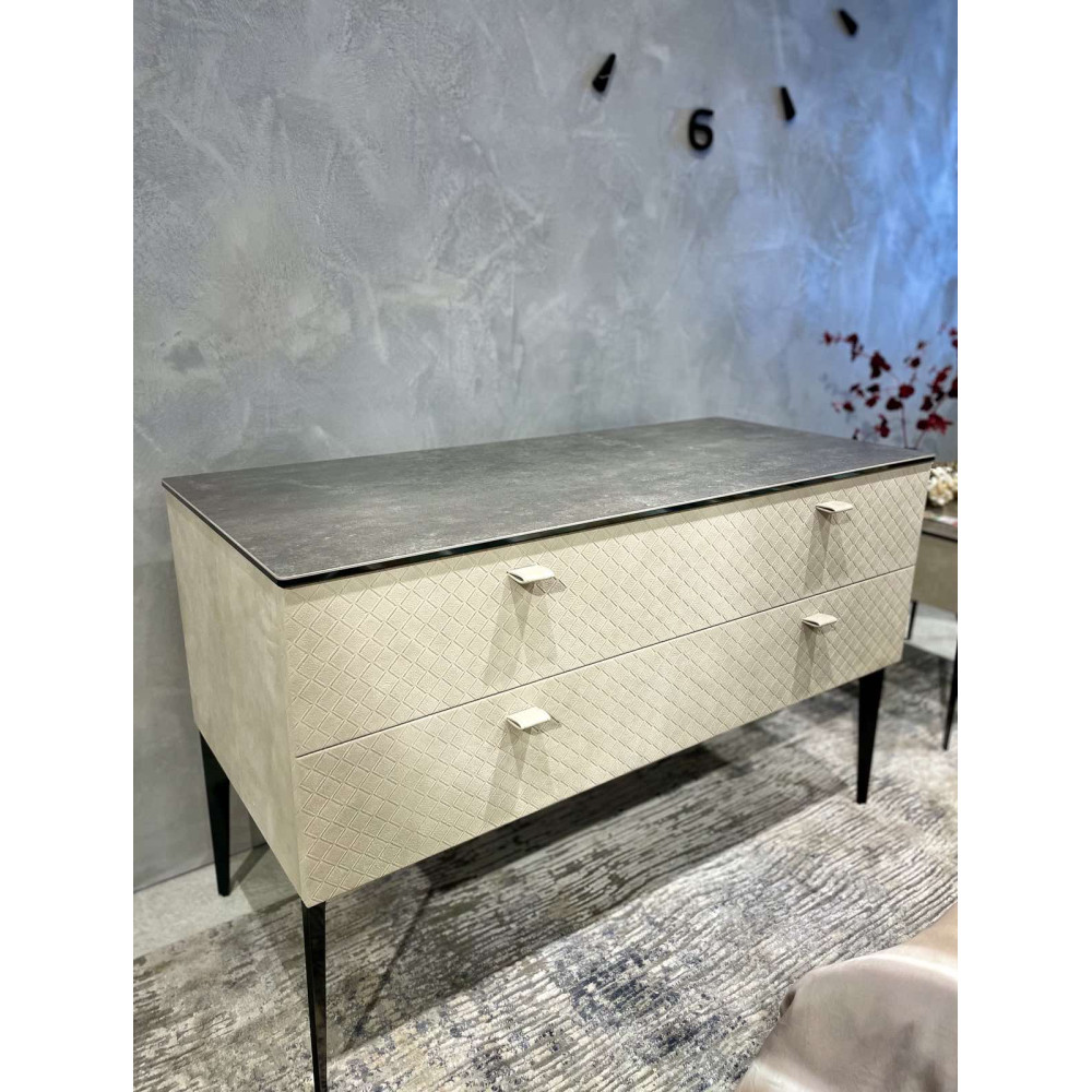 Сучасний дерев’яний комод, обшитий шкірою люкс-сегменту з стільницею з італійської кераміки, внутрішня обшивка в преміальній тканині. Завдяки неперевершеному дизайну та найкращим матеріалам дана модель буде радувати Ваш погляд багато років. Може бути виконана у різних варіантах кольорів. Повний цикл виробництва Італія. Gamma Italia входить в 15 світових топ-виробників шкіряних меблів.