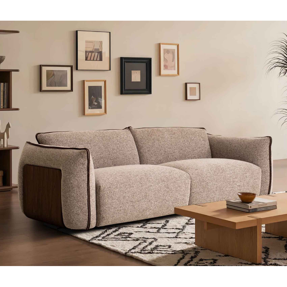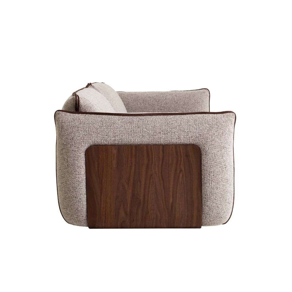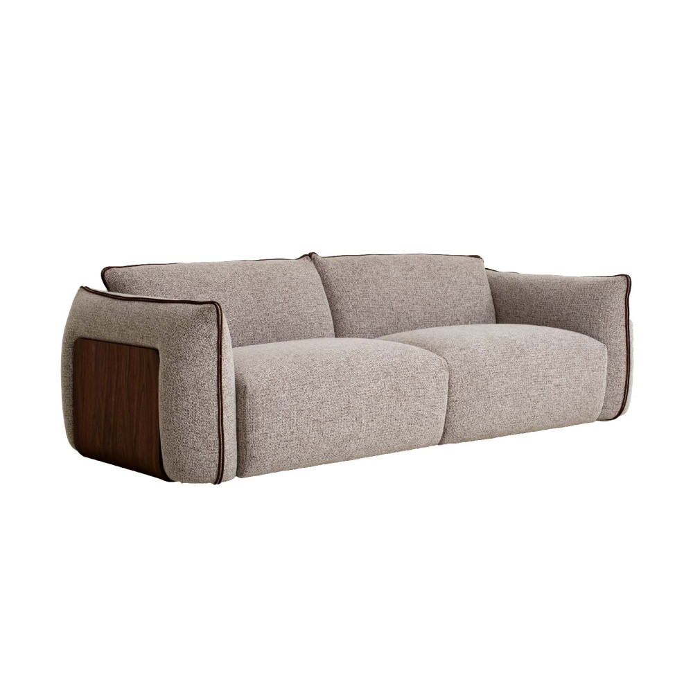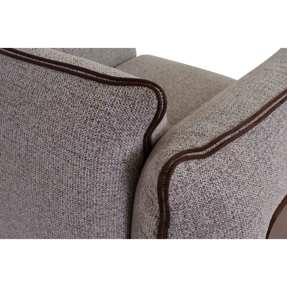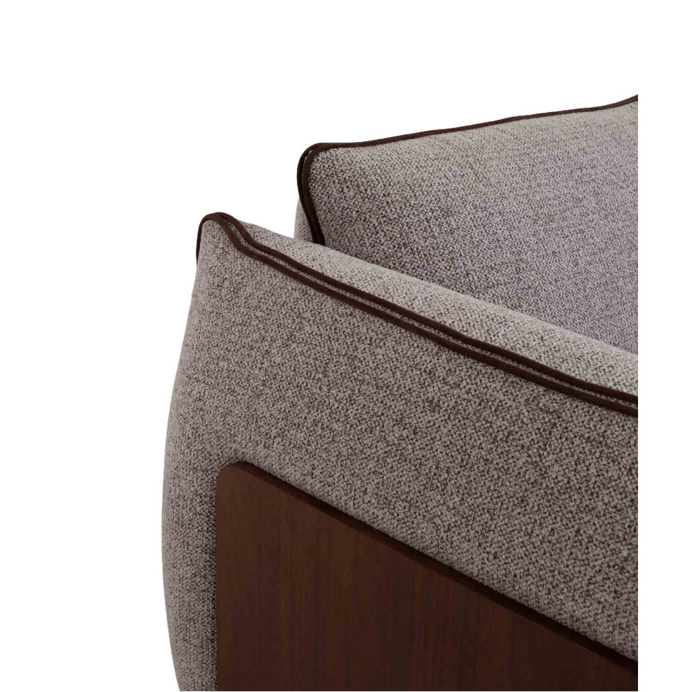 - Міцна конструкція: Основу дивана складає масив сосни, що поєднується з МДФ, покритим горіховим шпоном, та фанерою, надаючи йому стійкості та надійності. Така комбінація матеріалів забезпечує тривалий термін служби навіть при активному використанні.
