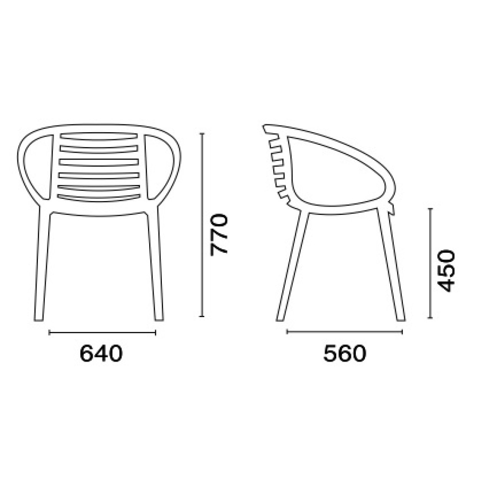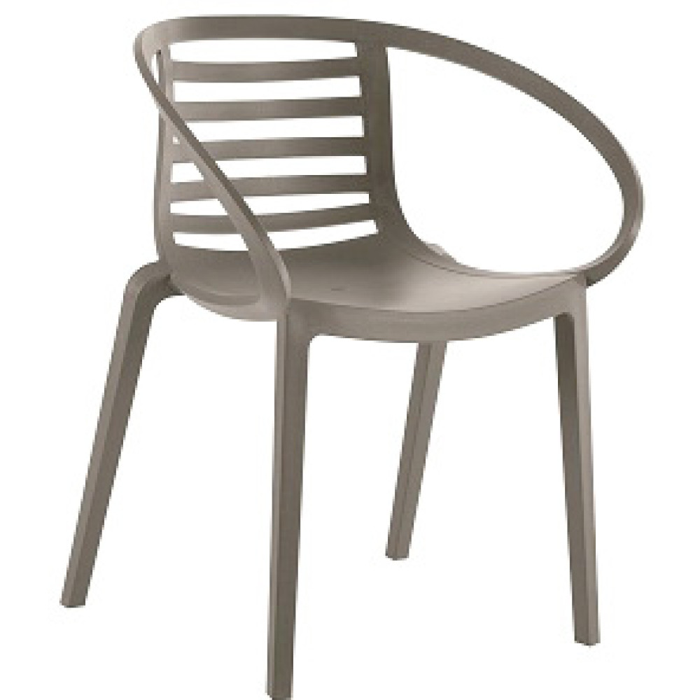 Дизайнерський стілець для ресторанів. Ідеально підходить для використання в приміщенні та на відкритому повітрі. Зручний предмет меблів з підлокітниками з армованого скловолокном поліпропілену. Стійкий до погодних умов і УФ-променів. Штабелювання до 9 штук. Доступні подушки для вулиці.
