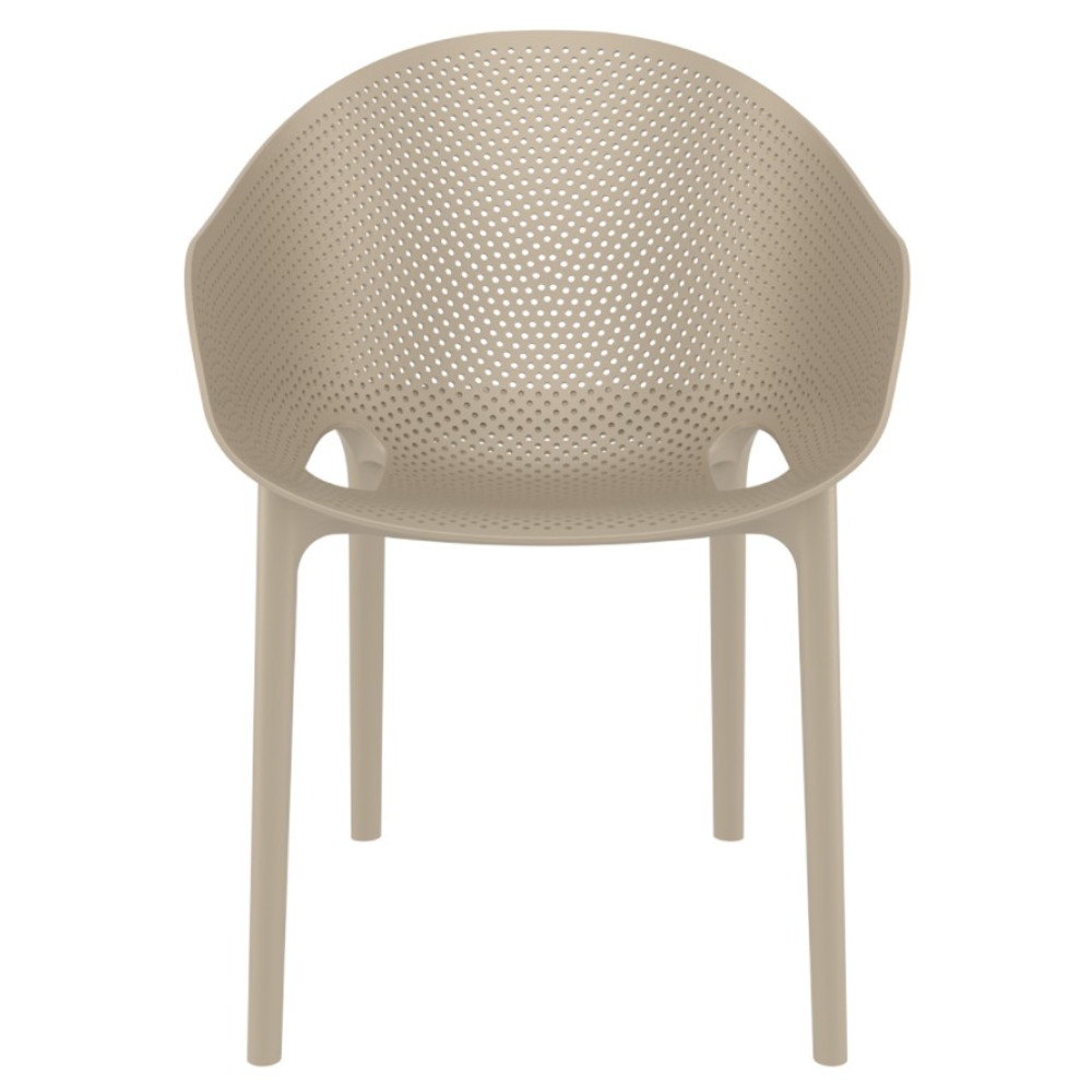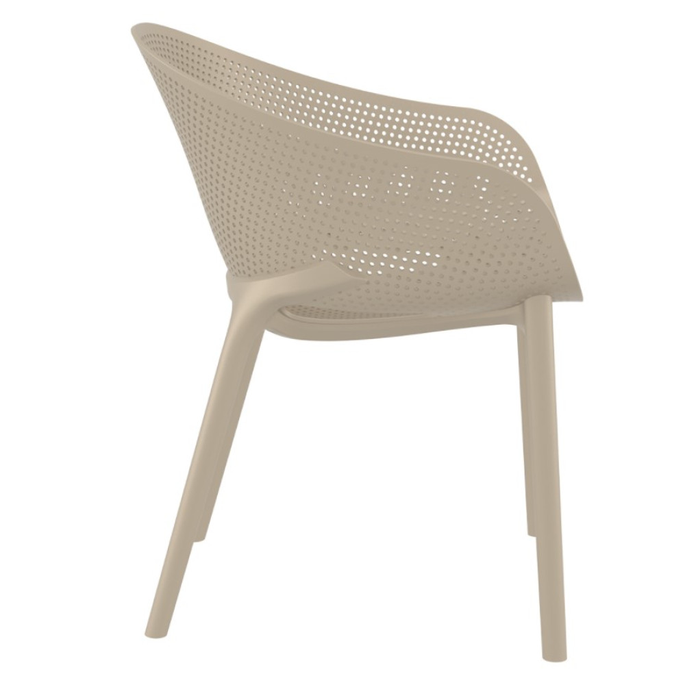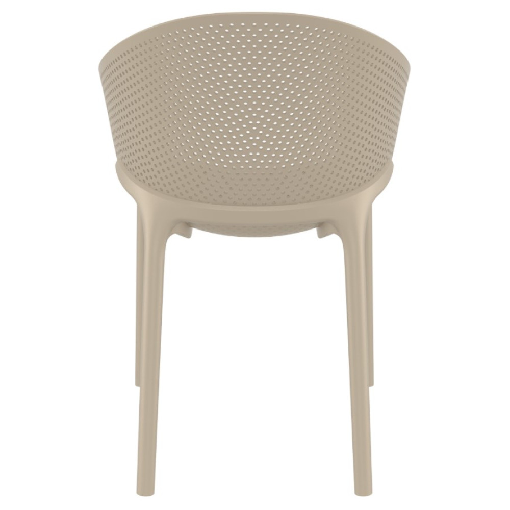 Стілець SKY PRO виготовлений з армованого скловолокном поліпропілену. Перфороване сидіння ідеально підходить для використання на відкритому повітрі. Зберігання стільців полегшується тим, що їх можна складати один на одного до чотирьох штук для економії місця.