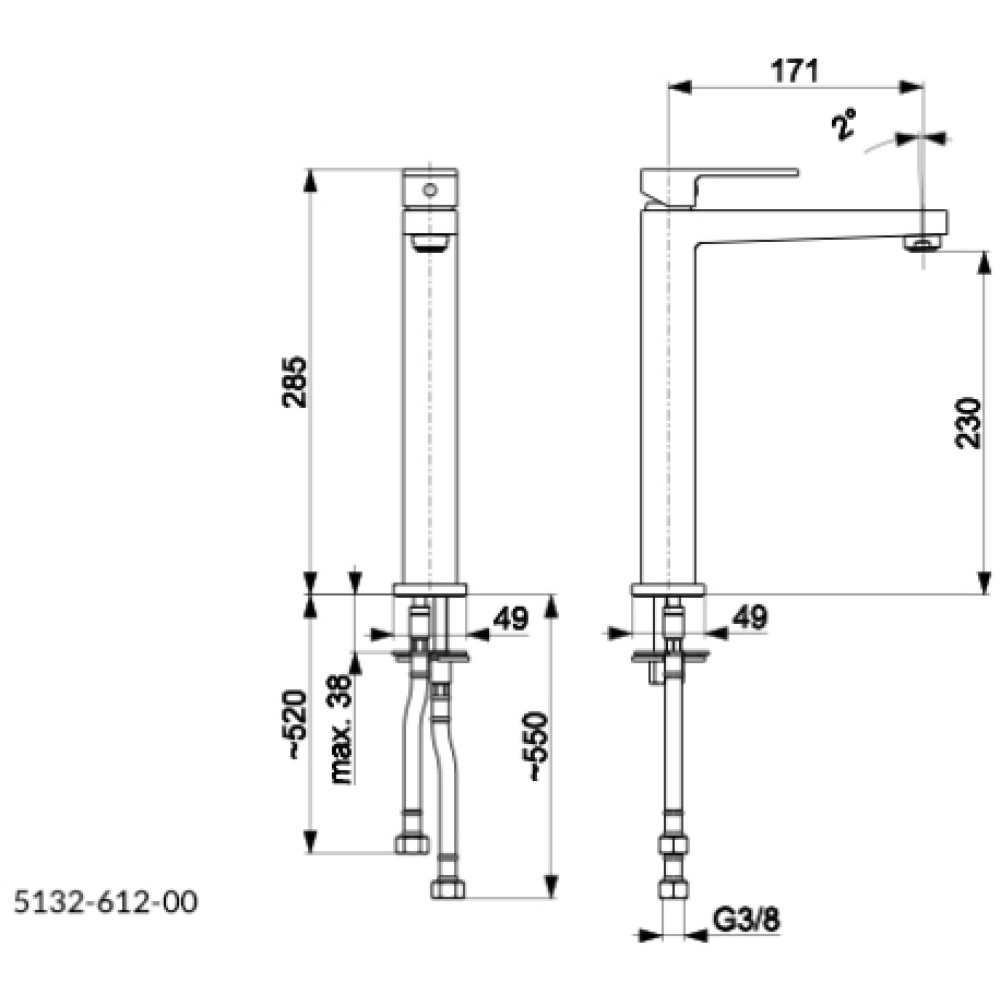 5132-612-81 - високий одноважільний змішувач для раковини-чаші,