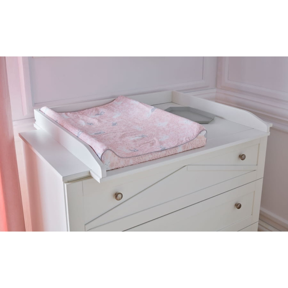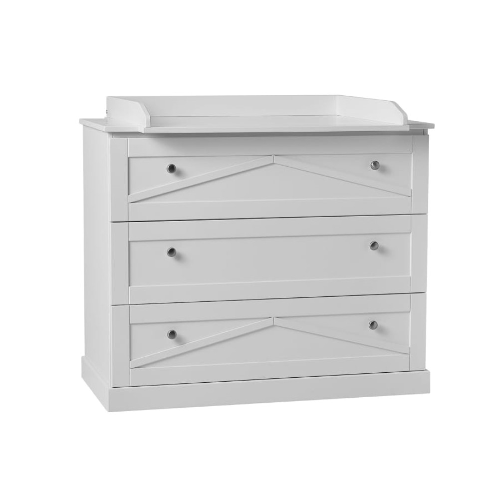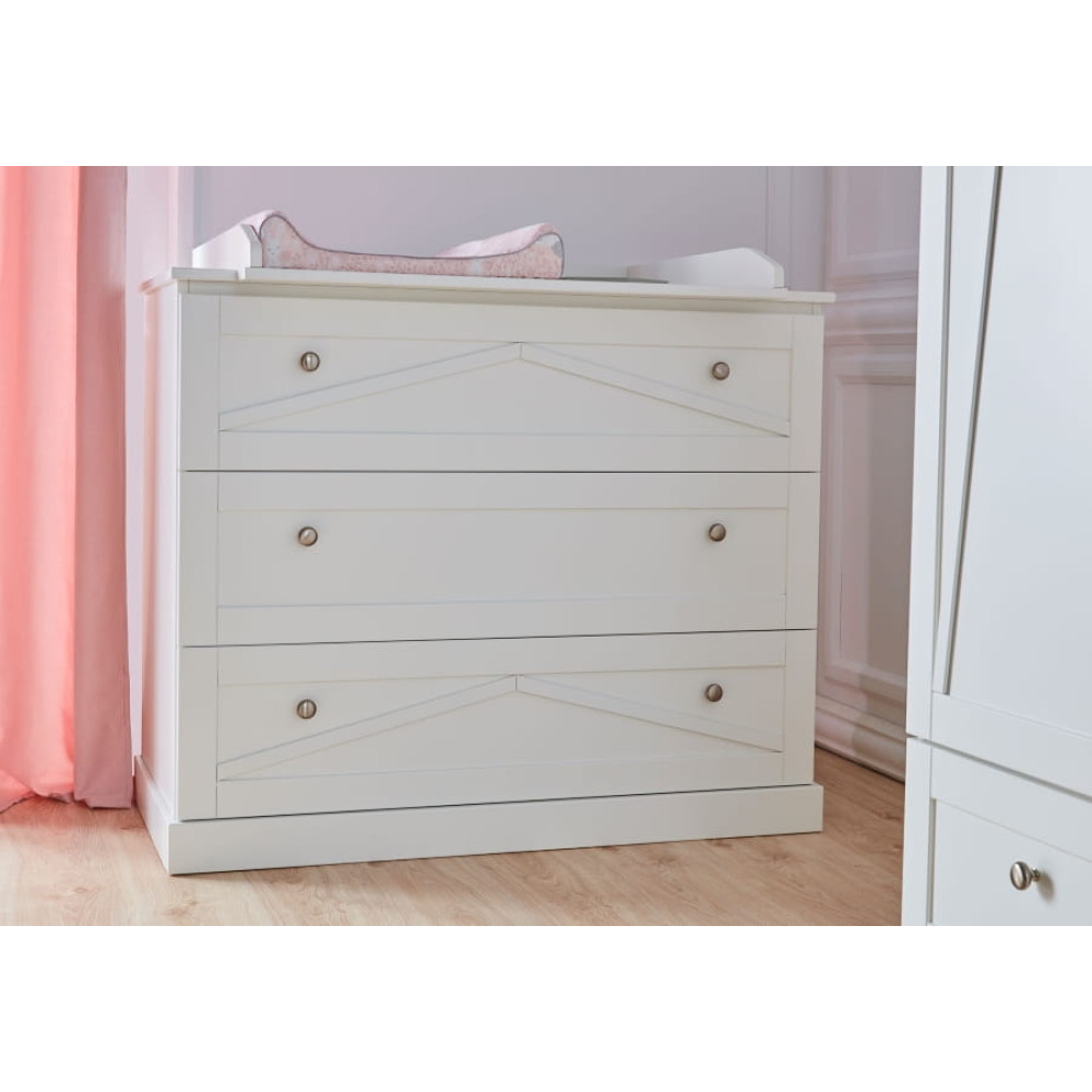 Місткий комод має 3 висувні ящики на якісних напрямних з гальмом та механізмом самозакривання. Ви можете купити знімний пеленальний килимок для комода