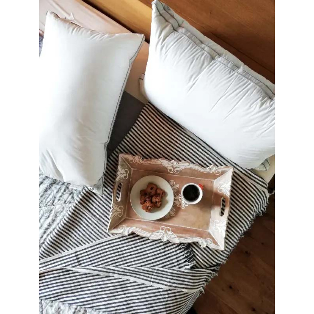 Pillow Rio від Cinelli – це трьохкамерна подушка преміум-класу, яка поєднує комфорт і підтримку завдяки унікальній конструкції та натуральним матеріалам. Наповнення з пуху та пера забезпечує м’якість, а батистова оболонка додає легкості та елегантності. Центральна камера має 30% пуху та 70% пера, щоб забезпечити правильну підтримку голови; в той час як дві зовнішні камери з внутрішнім оздобленням на 100% пуху забезпечують максимальний комфорт та м'якість. Подушка обшита срібною окантовкою по всьому периметру, що також робить подушку Rio дуже елегантною.