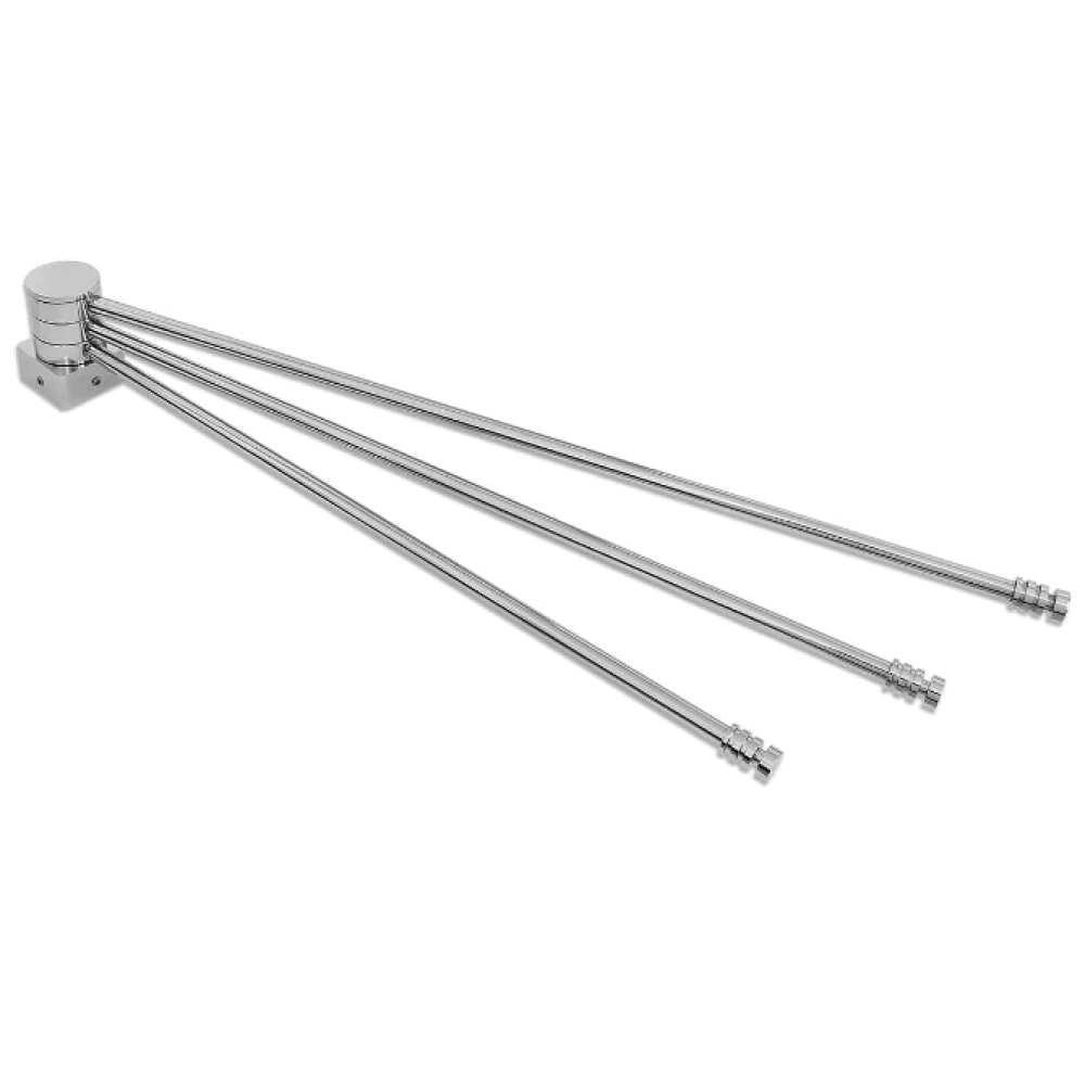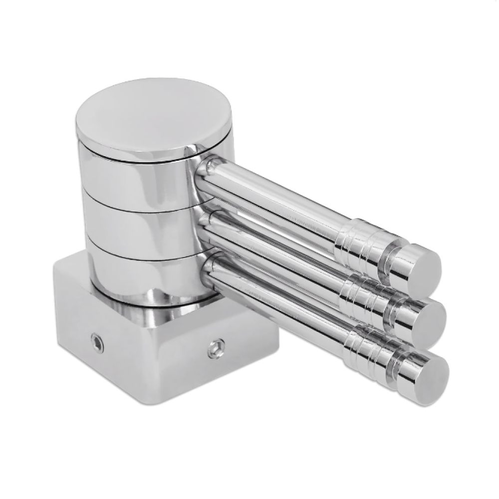 Знімна поворотна полиця для сушки для рушників призначена для розміщення на будь-якій стійці з основою 30 мм. Три поворотні секції дозволяють зручно розмістити рушники у ванній кімнаті. Щоб не допустити пошкоджень сушки для рушників, при установці полиці використовуються три штифти і шестигранний ключ (в комплекті). Додаткова зручність надає можливість переміщати полицю на свій розсуд.