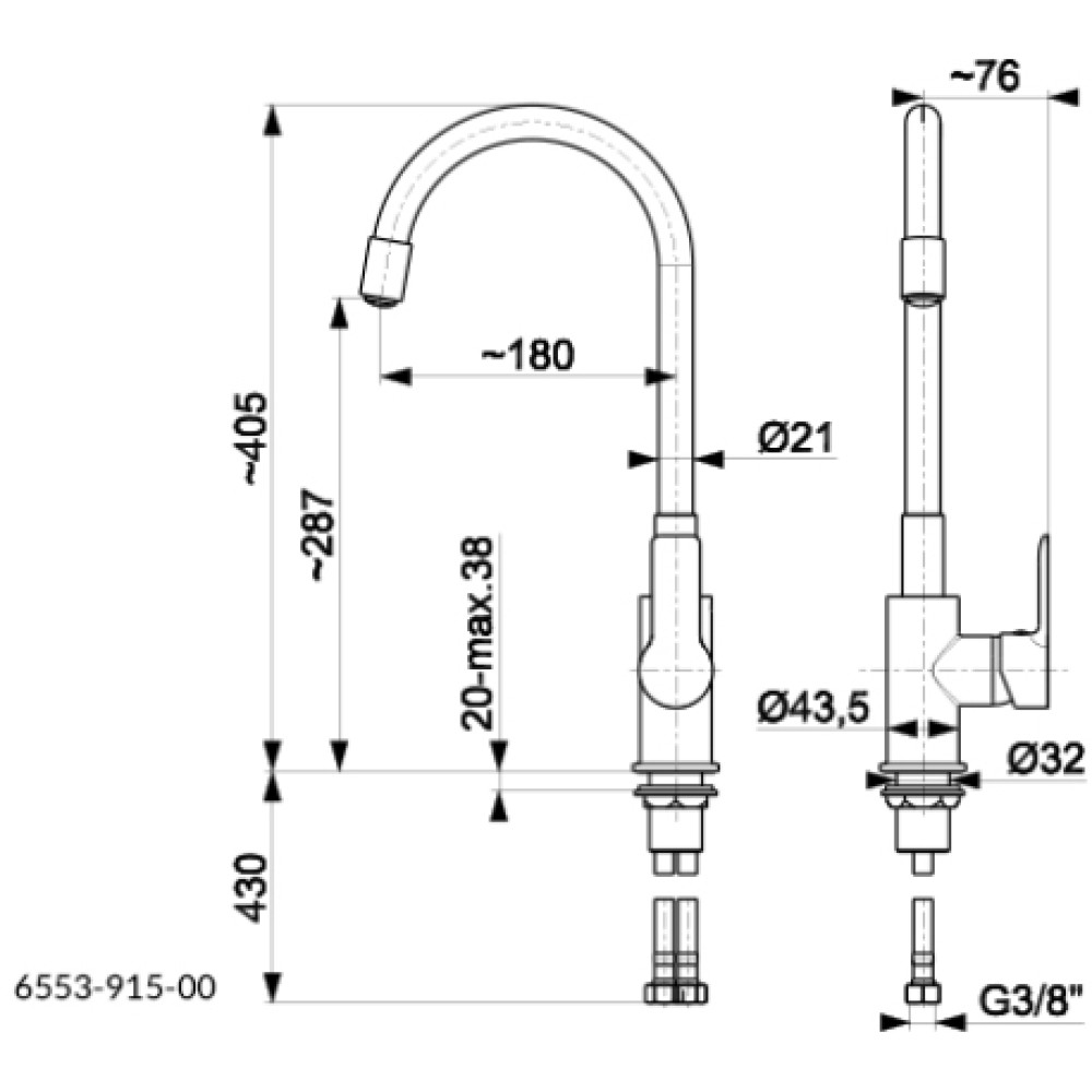 Вилив: гнучкий, поворотний (не витяжний).