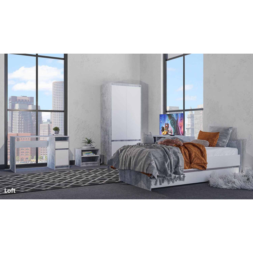 Шафа для одягу з колекції "Лофт" — це стильний і функціональний елемент для зберігання речей, який ідеально підійде для сучасного інтер'єру. Розмір шафи — 90x206x56 см, що забезпечує достатньо місця для зберігання одягу та інших речей. Каркас шафи виконаний із високоякісного ДСП, що гарантує довговічність і стійкість до зносу.