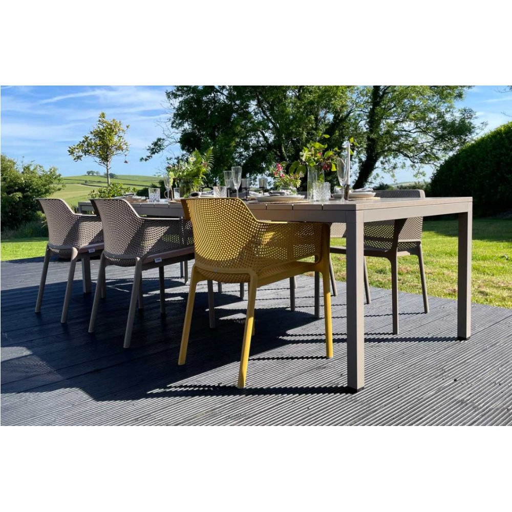 Розкладний стіл зі стільницею з поліпропілену DurelTOP із захистом від ультрафіолетового випромінювання. Алюмінієві ніжки покриті порошковою фарбою і регулюються по висоті