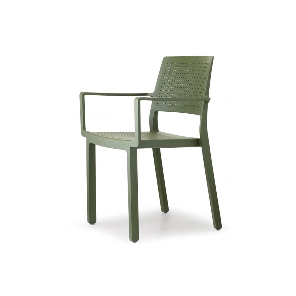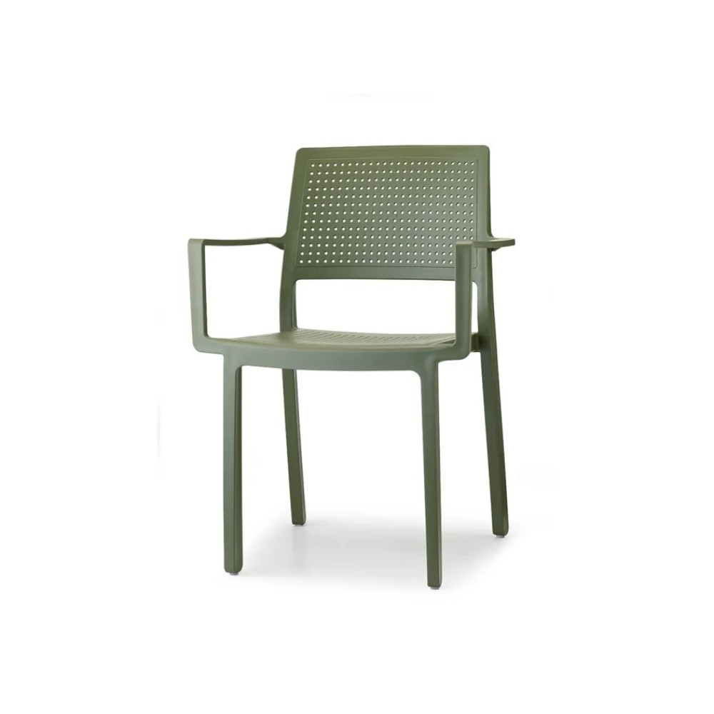 Поліпропілен поєднує в собі легкість, міцність, стійкість до пошкоджень, сонця, дощу. Стільці штабелюються, гармонійно вписуються в сучасний інтер'єр. Mодель, яка ідеально підійде для оформлення будь-якого приміщення