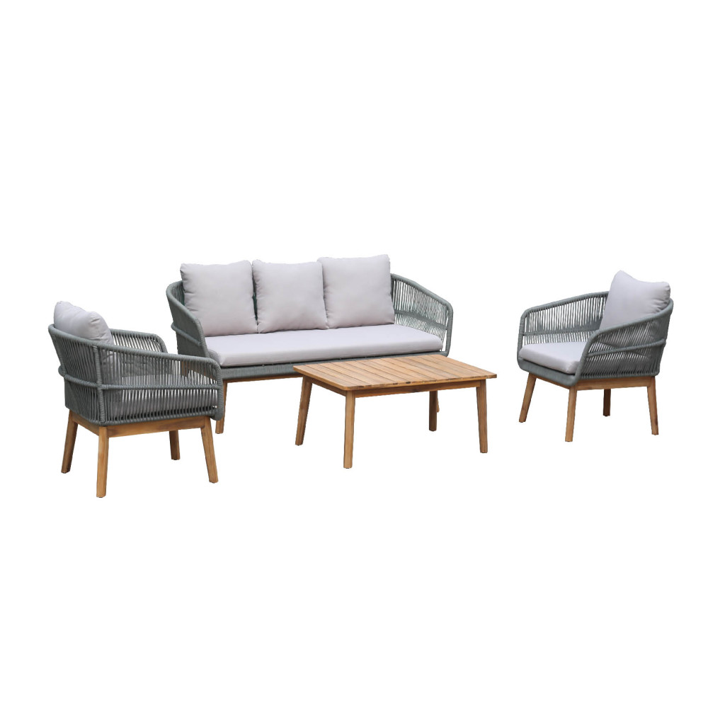 - Колір: Гармонійне поєднання натурального відтінку деревини та сірого кольору плетіння, що підкреслює елегантність меблів.