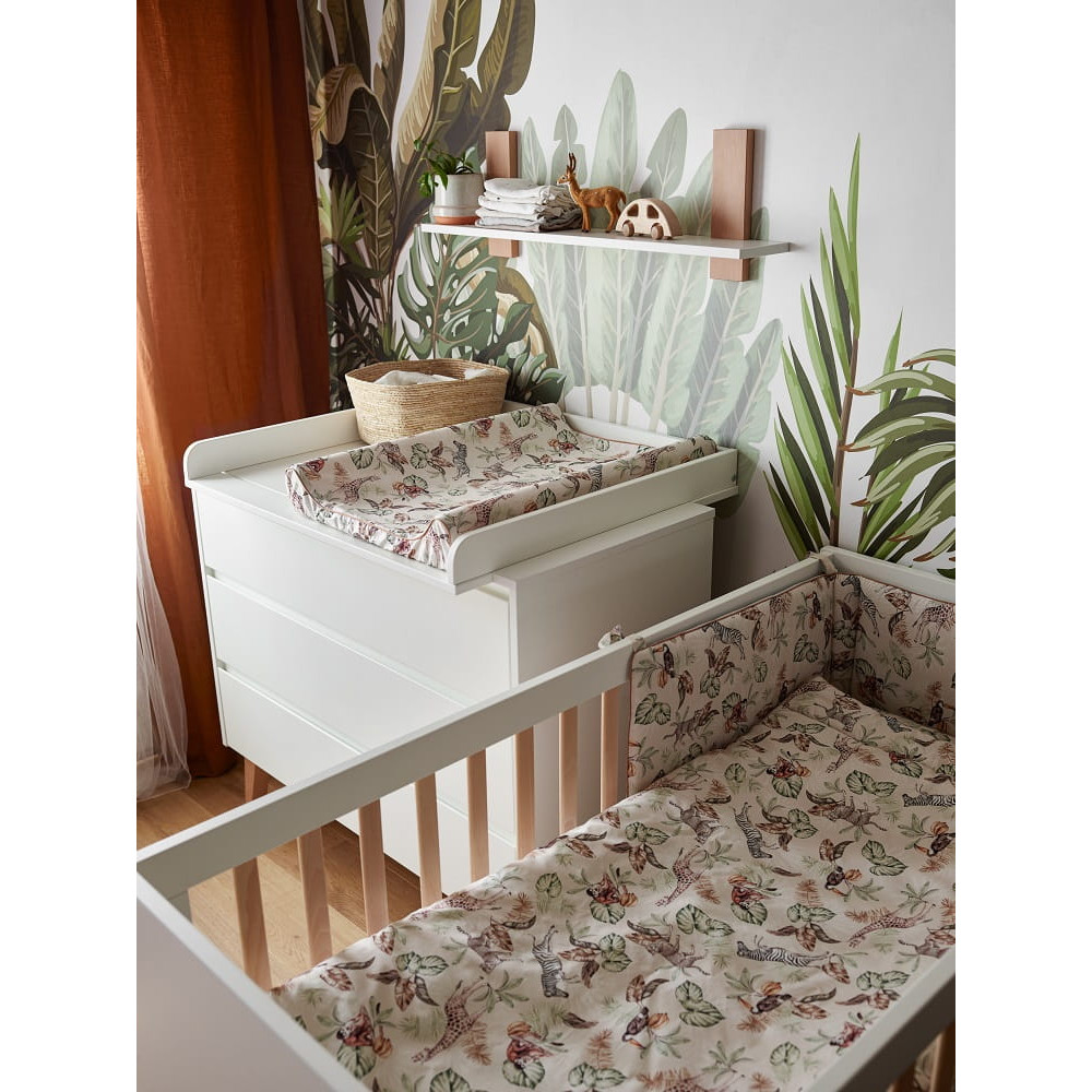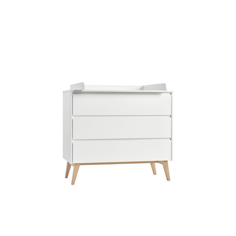 Місткий комод має 3 висувні ящики на якісних напрямних з гальмом та механізмом самозакривання. Ви можете купити знімний пеленальний килимок для комода.