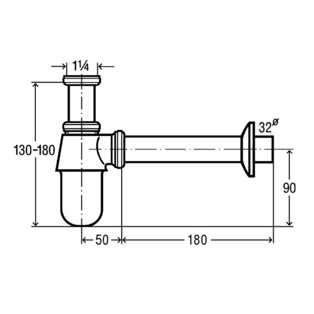 Пляшковий cифoн, діaмeтp чашки 50 мм. Сифони виготовлено зі стійкої латуні, вони мають глянсове хромування і вирізняються особливою продуктивністю зливання.