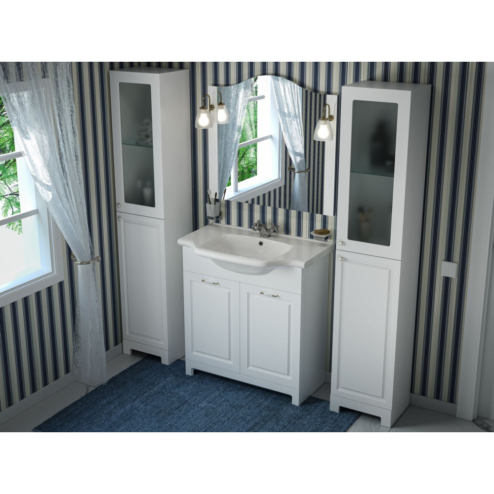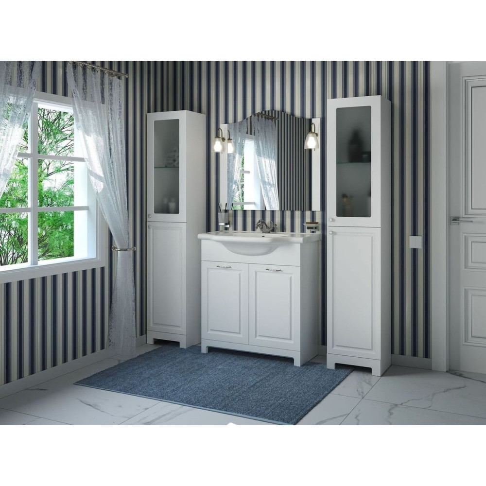 Представлена тут підлогова тумба серії Класік від Aqua Rodos оснащується трьома дверцятами з двома внутрішніми поліцями. Модель поставляється разом із раковиною New Klasik від CeraStyle шириною 80 див.