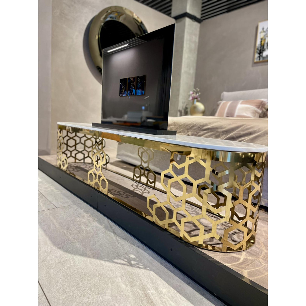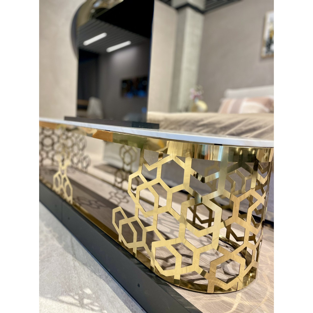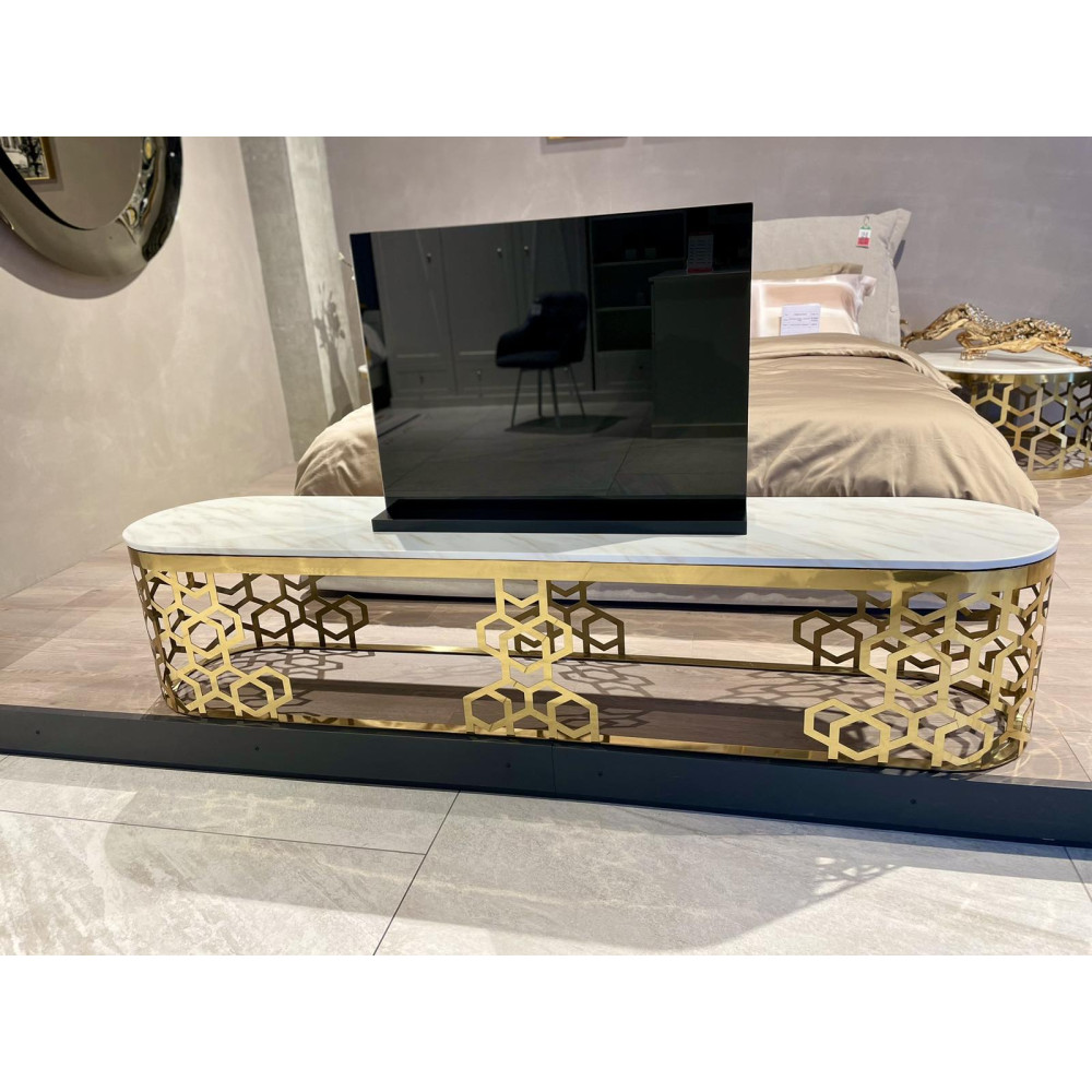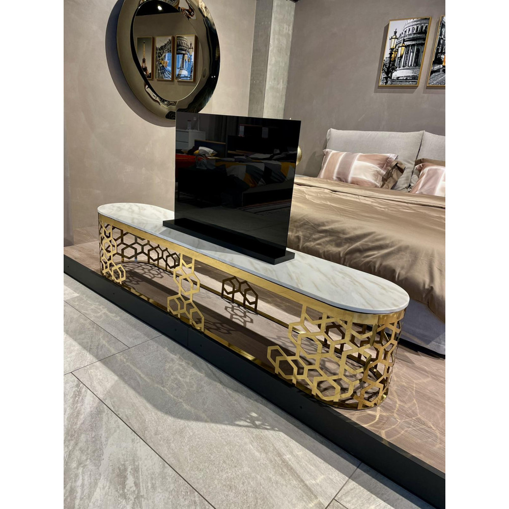 Тумба під телевізор золота нержавіюча сталь, мармур Sogni
