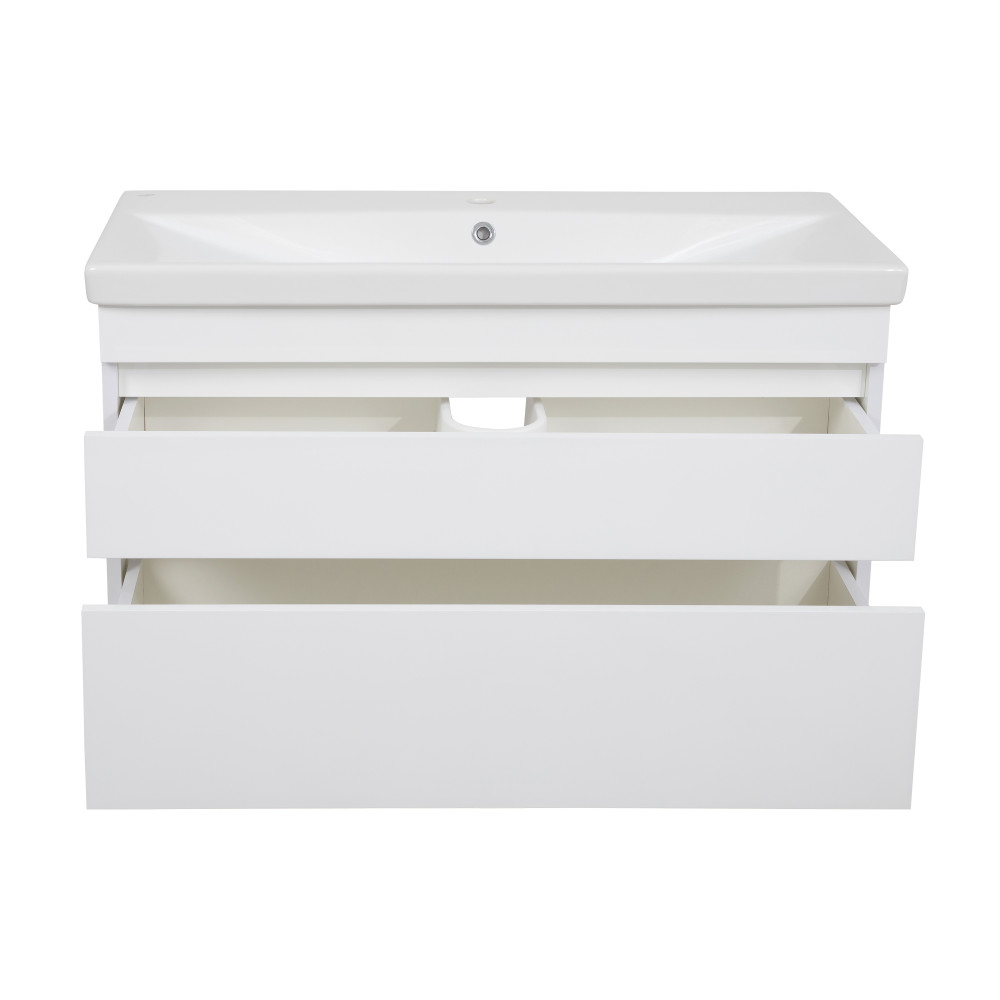 &Модель комплектується керамічною раковиною серії Frame шириною 80 см від турецької компанії Cerastyle. Раковина має відвір для монтажу змішувача і поставляється з переливним відверненням.