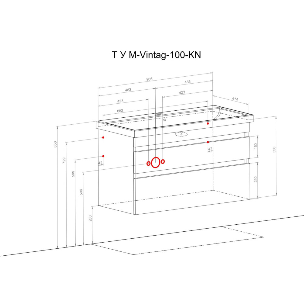 Тумба "Вінтаж" (білий глянець) 100 см з умивальником "Elite" (консольна)