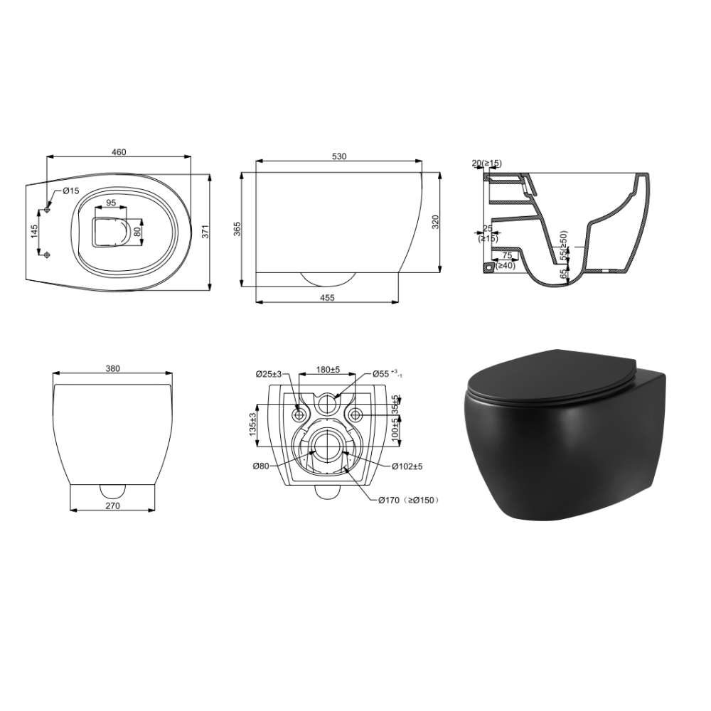 Унітаз підвісний Devit Acqua 3020155B безобідковий з сидінням slim, soft-close, quickfix