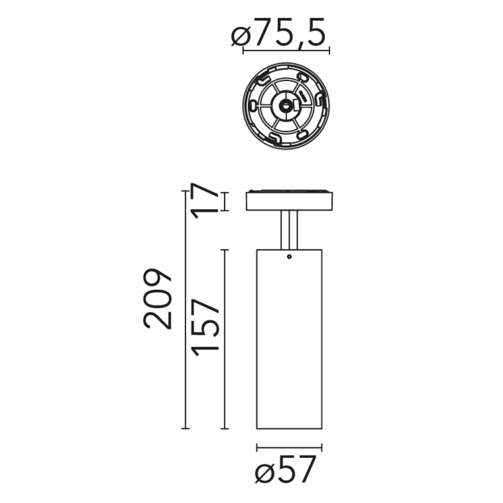 Світлодіодний тубус для поверхневого монтажу. Блок живлення 120-277 V і потенціометр в комплекті.