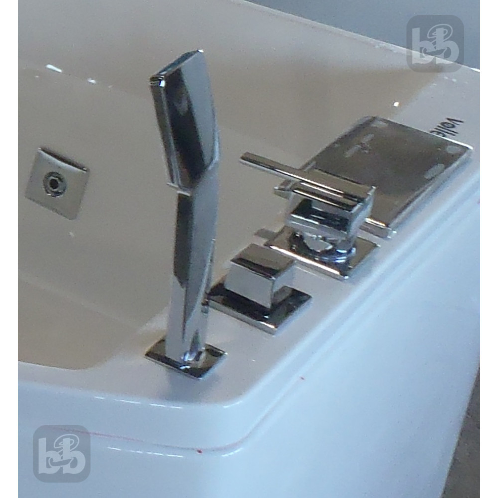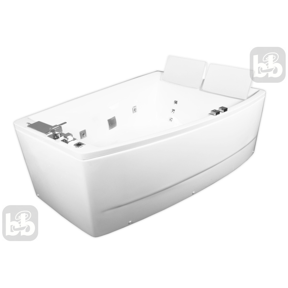 Ванна асимметричная с гидро-аэромассажем, 1700*1200*630 мм, левая, акриловая, электронное управление, пристенная. Два белых подголовника, смеситель в комплекте с носом наливом "водопад" плоский и ручным душем на шланге, сифон-перелив автомат. Гидрофорсунка квадратная ф 42мм 8 шт., гидрофорсунка квадратная ф 65мм 5 шт, аэрофорсунка Ф21мм- 12 шт., водозаборник, гидромотор 1 HP,аэромотор 0,75 НР кран обогащения струи воздухом. Объем 295 литров.