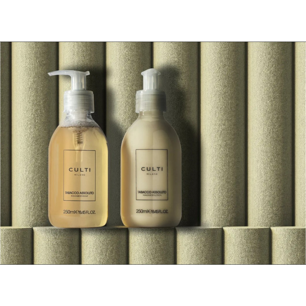 Ексклюзивна колекція від Culti пропонує повний набір засобів для ванної кімнати з приємним ароматом: рідке мило та лосьйон для рук і тіла з доглядаючим ефектом доступні у вибраних ароматах. Конструкція дозаторів-насосів базується на культових дифузорах ароматів серії Stile, але з міркувань безпеки та більш приємного використання у ванній кімнаті дозатори для мила та лосьйону виготовлені з пластику. Побалуйте себе улюбленими ароматами Culti і насолоджуйтеся гарним самопочуттям завдяки високоякісним компонентам догляду.